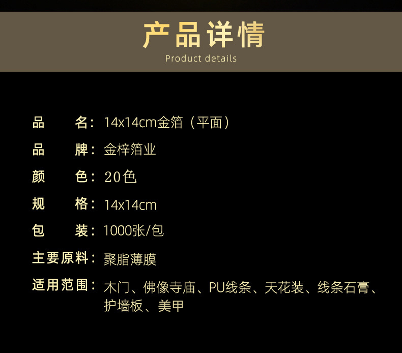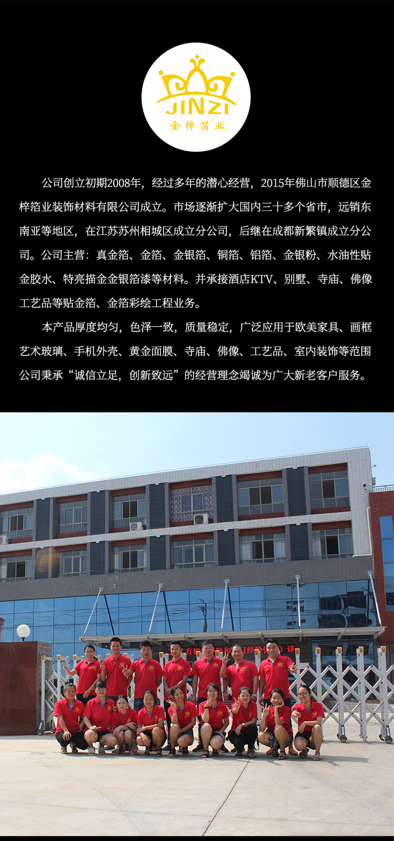 歡迎來到佛山市金梓箔業(yè)裝飾材料有限公司的網(wǎng)站! 貼金箔 | 網(wǎng)站地圖 | 聯(lián)系我們| 中文| English|